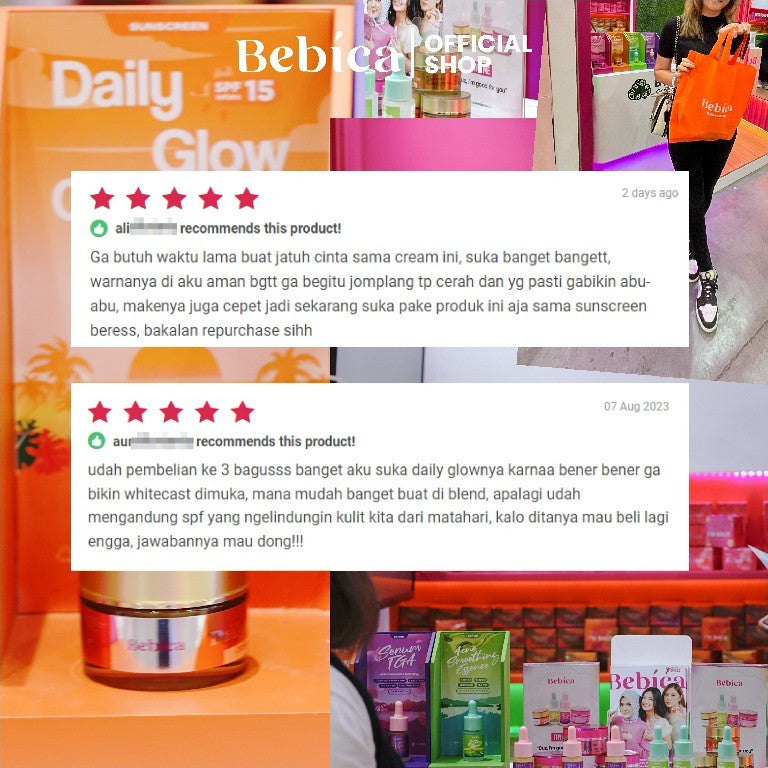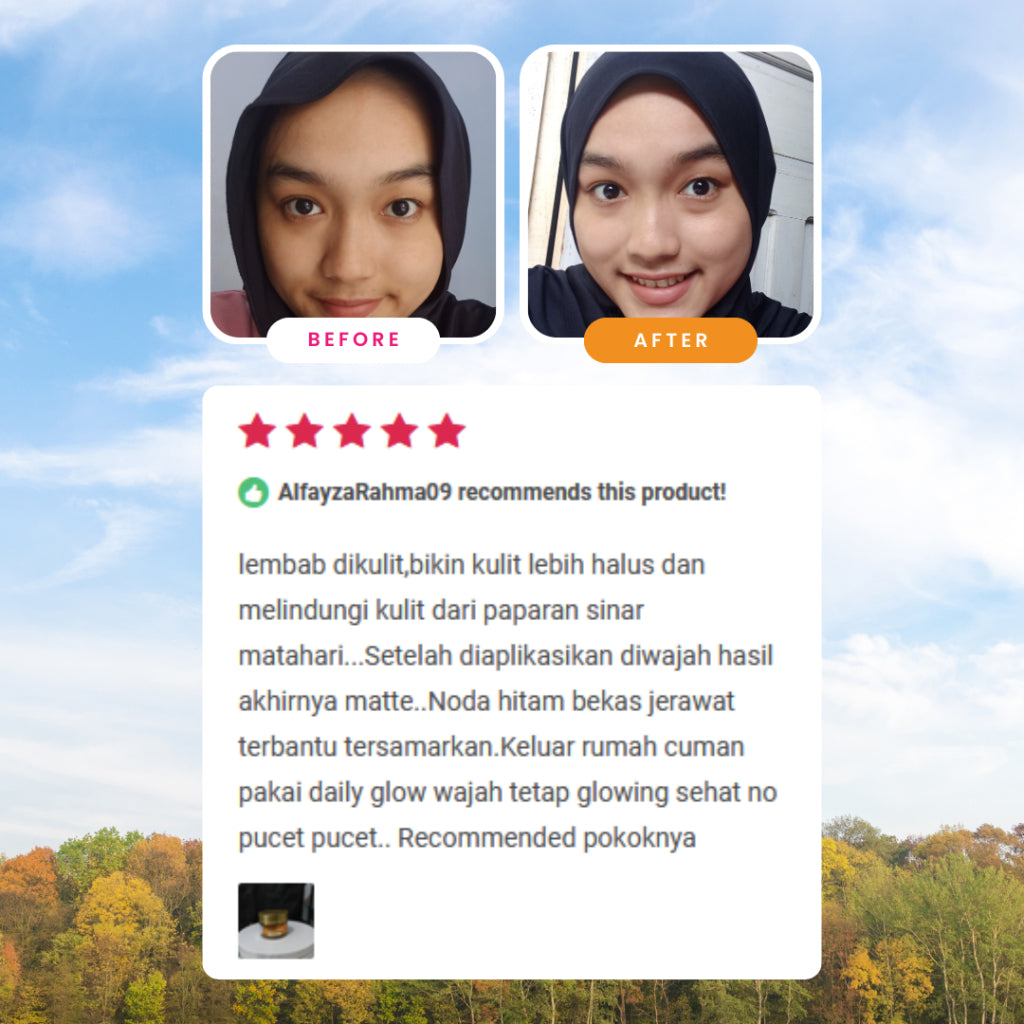 Daily Glow adalah krim siang dengan kombinasi bahan aktif dan alami yang membantu menjaga kulit tetap cerah, lembap, dan tampak lebih halus saat digunakan secara rutin. Cocok untuk perawatan harian dan aktivitas di luar ruangan.